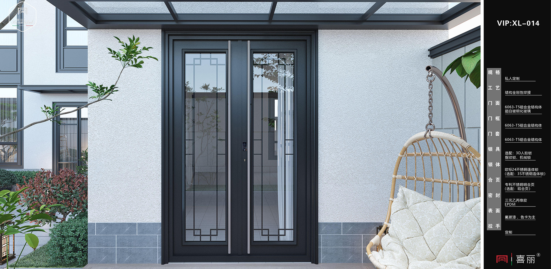 全鋁裝甲玻璃門(VIP:XL-014)